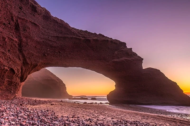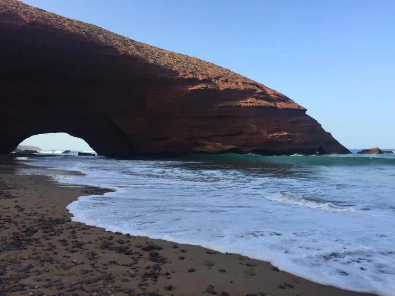 Discover Lagzira, one of Morocco’s most breathtaking beaches, famous for its stunning natural rock arches and wild landscapes. Nestled between Tiznit and Sidi Ifni, this coastal paradise is perfect for nature lovers, hikers, and surfers. Enjoy a day of adventure with golden sands, dramatic cliffs, and perfect waves for an unforgettable experience.